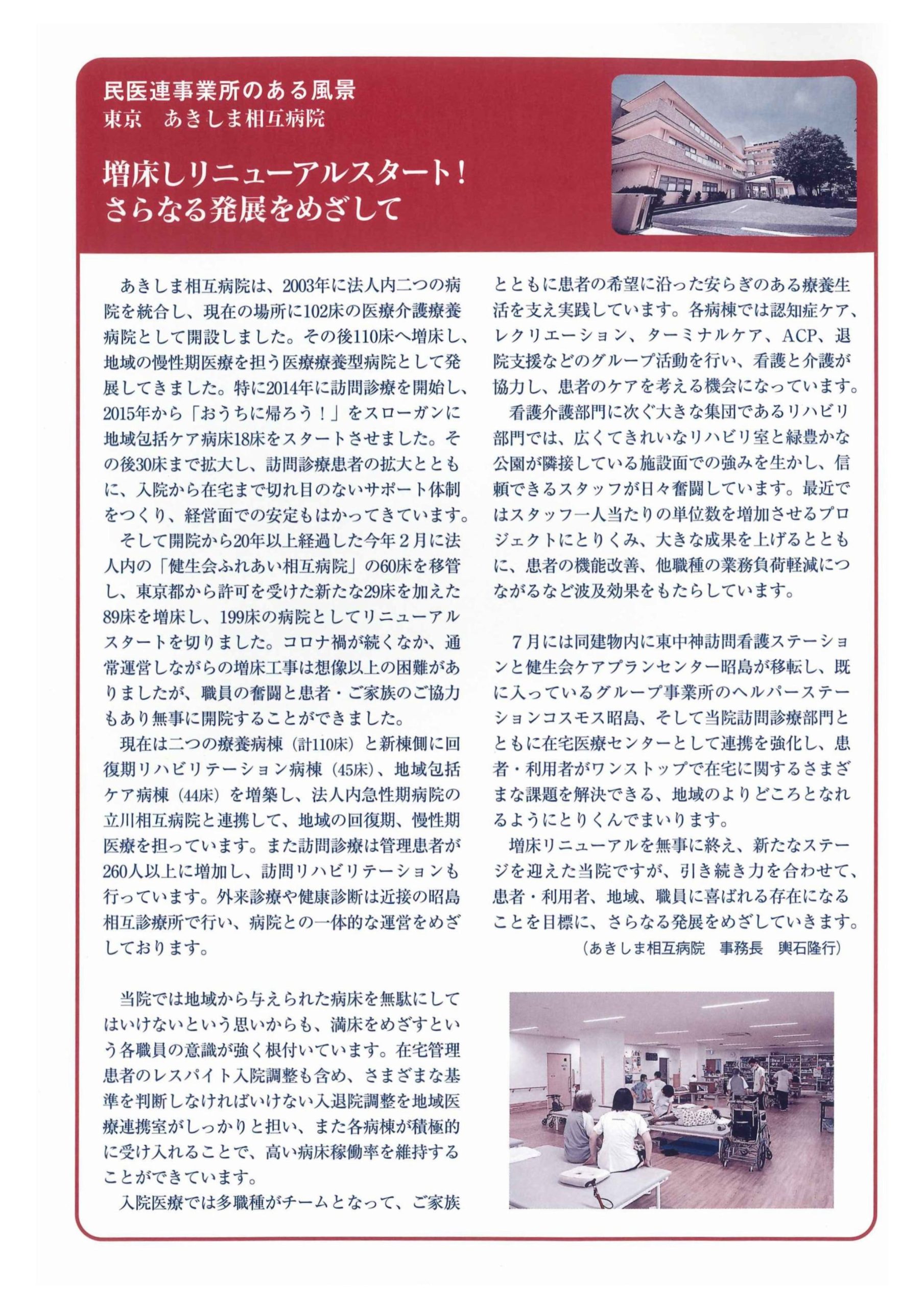 『民医連医療』11月号の「民医連事業所のある風景」で掲載がありましたので、紹介します。患者さん、職員さんの安心した笑顔を見ることができ、安堵します。